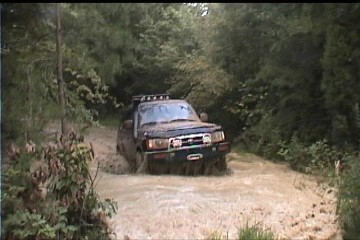 I think I will be getting a snorkle soon. Too many close calls. That crossing scared me as the water was only inches from my headlight/intake. At least 3rd gens intakes are back and higher. I can only make a small bumper wave in front of me and be safe. Hyperlite, are those pictures from a video capture or a digital? They would make a great desktop if it was a big digital picture. Did your Hellas get any water in them?