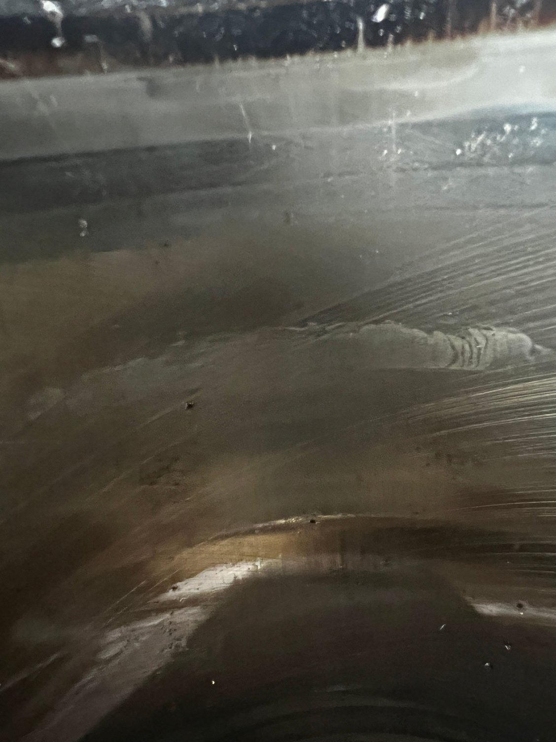 While looking closer I noticed a mark on one of the cylinder walls (Pictured below) that may have been from a previous repair, but not sure. I had expected to see the cross hatching over this spot even if a prior repair, and my assumption was that this might be a low spot and could be the source of my low compression. It feels smooth when rubbing my finger/nail over it, but I realize that's not the most reliable test.