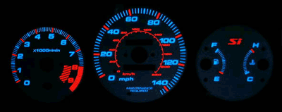 I'm trying to find an alternative set of gauges for a '91 4Runner but can't find anything online. I really don't like the green look, especially since my stereo and half the stuff I own is blue or red. I'm not sure how blue or red bulb covers would look behind the panel, but I haven't found those either. I really like the style shown in the picture below. I would appreciate any help I can get.