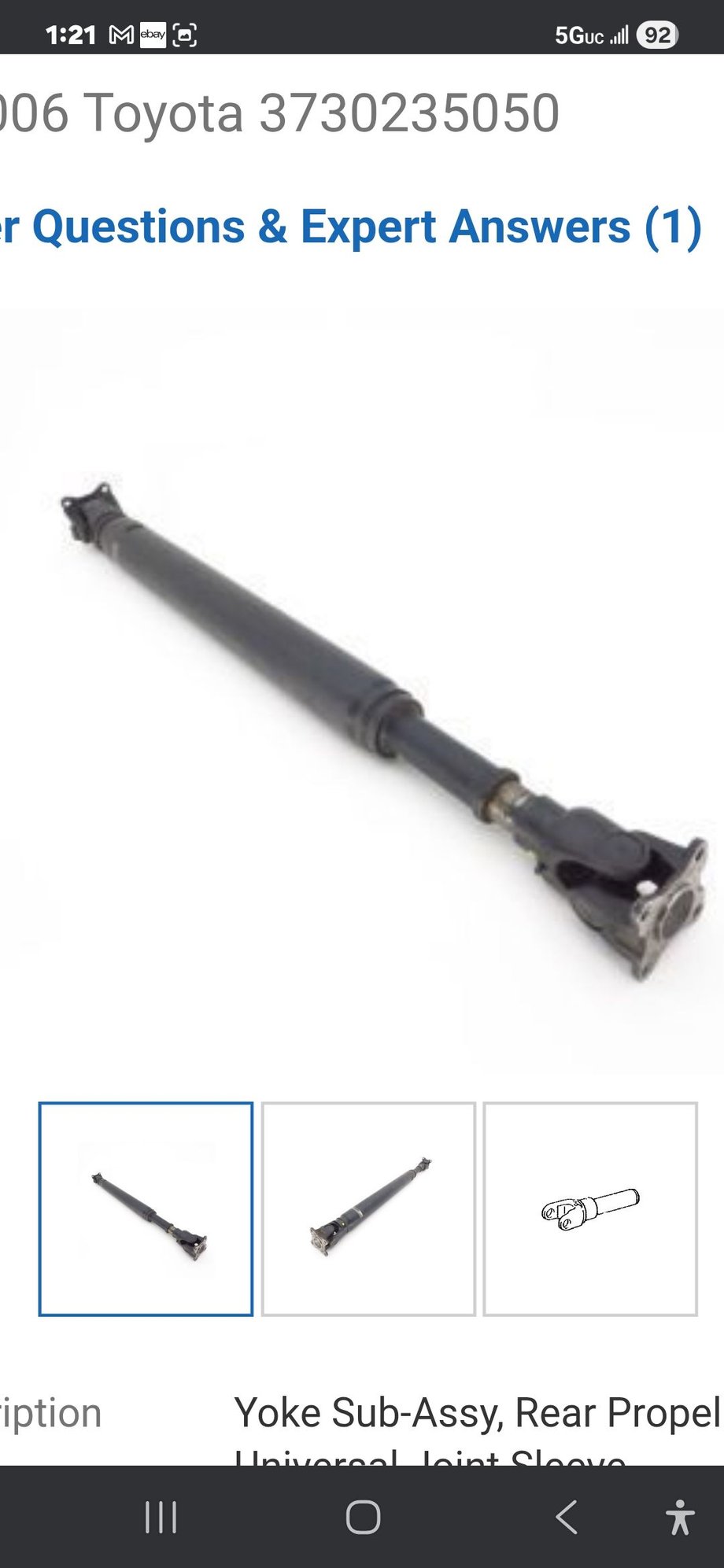 Toyota 37302-35050 Universal Joint Sleeve Yoke Sub-Assembly $191.50