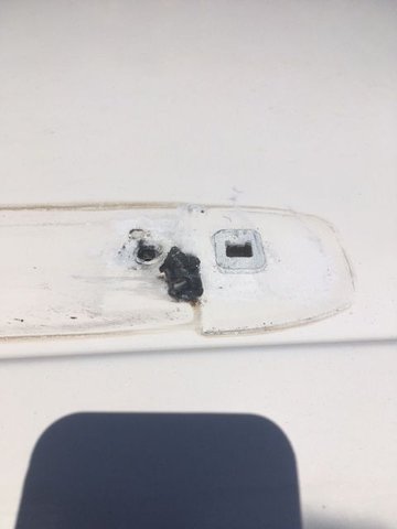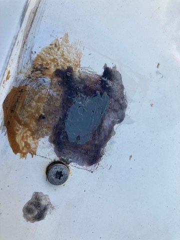 The plastic doo-dad from underneath, along with a smidge of rust. The outside wasn't showing any rust around it.