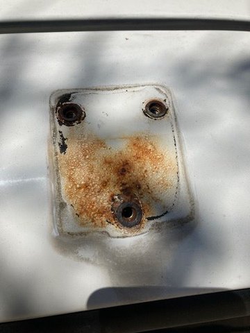 Getting ready to do a permanent fix for these rust spots as they keep growing. The evaporust gave some protection but isn't a converter. I'll probably remove the plastic plugs, grind away the rust, then primer and paint. I plan to close up the square holes with epoxy to really seal against future corrosion. Its all hidden under the rail trim so it does not have to look good.