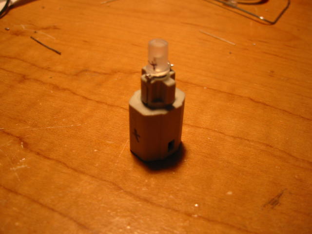 -Solder the LED to the tabs sticking out the top. ***Mark on the bulb holder which side is the LED's + because I think this holder is reversible.***