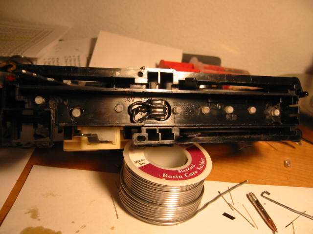 the back, showing the wiring. The wires are sandwiched in electrical tape