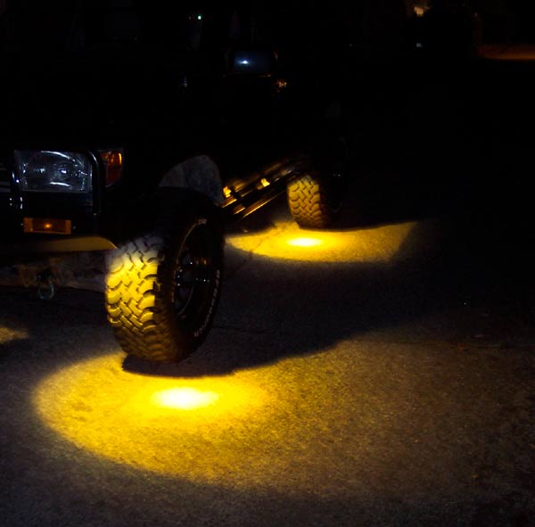 I'm also adding some cheap walmart fog lights underneath these on the bumper. I also bought some cheap driving lights from WalMart that I'm going to mount underneath the rear bumper somewhere for backup lights. I'm also fooling with the idea of outside door lights mounted underneath that will light up with a remote as well as with a switch... like rock lights but also useful for everyday (well, night) use.