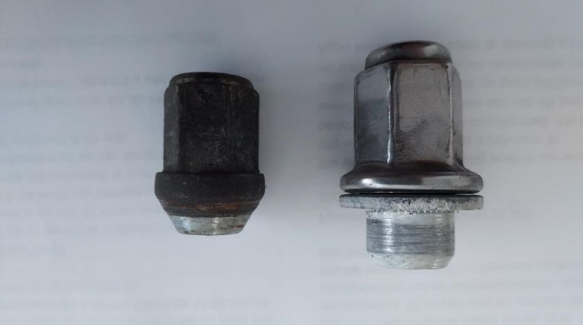 I got over my laziness. OEM nut on the right, aftermarket (Oreilly) on the left. And my wheel kinda looks more ball than conical...I'd really need examples side by side to tell.