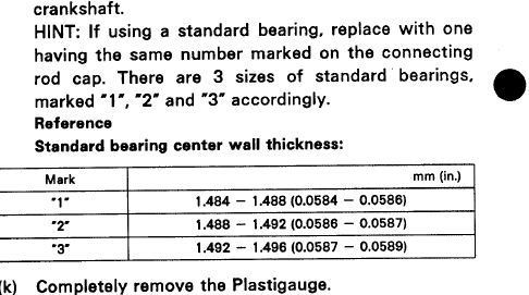 My rod has a number 2 on it, I assume this means my OE bearing is Mark 2? I don't see a 2 on the bearing like FSM says but I see a part number. That means I could go to a mark 3 if I have to but difference is only +0.0001? Why would they even bother or is this a misprint? Or is wall thickness delta not the same as clearance delta?