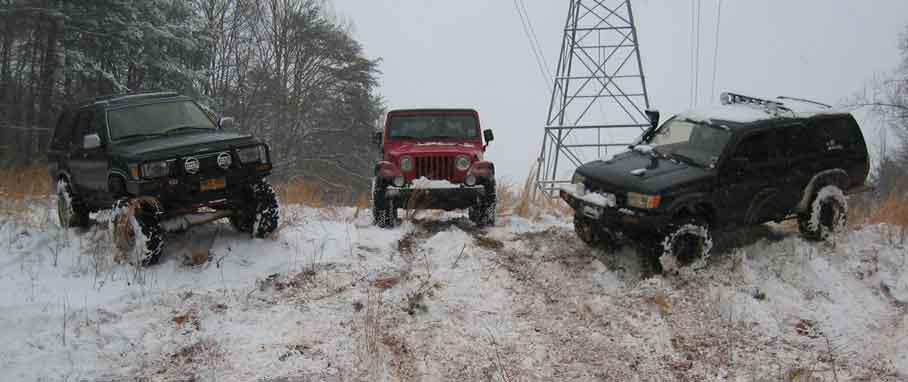 heres a pic of the roadster and the runners although i dont have a front driveshaft yet i still had to hit the trail since the last snow my truck was gettin a solid axle