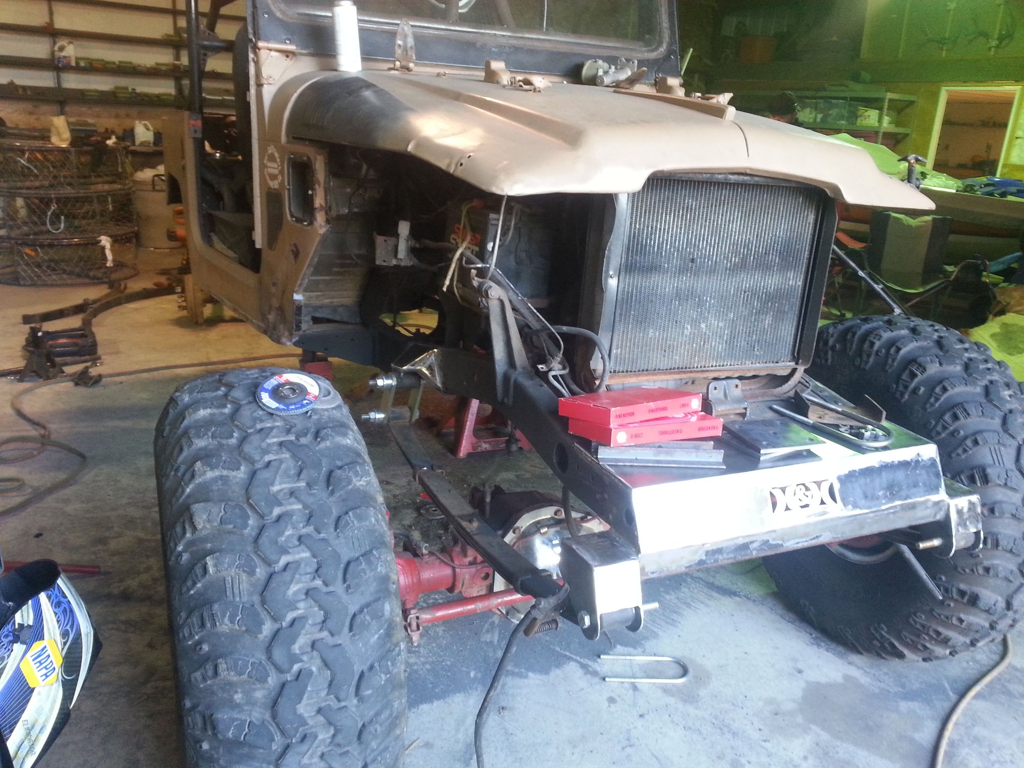 The shop it is at is called H&H Fabrication in crescent city California. Two really cool brothers who know how to build stuff! The front axle is a king pin dana 60. rear is a dana 60.