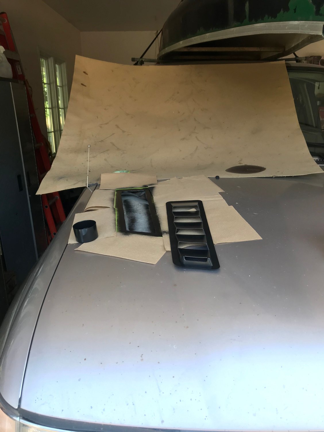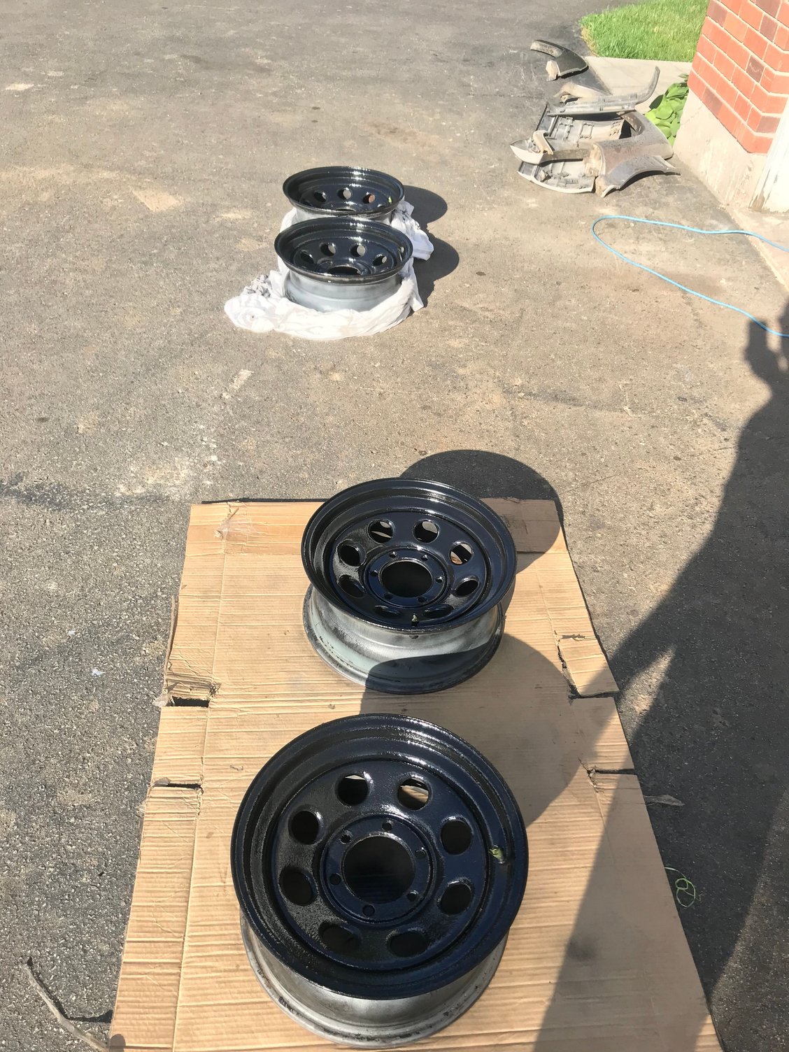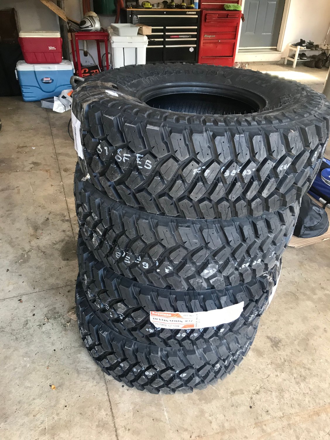 Loaded up Tore a flare off on a wheeling trip New 315/75r16 Firestone destination mt2 Tearing one flare off lead to this.... 130 holes filled, primed and ready for... Bedliner. Final product