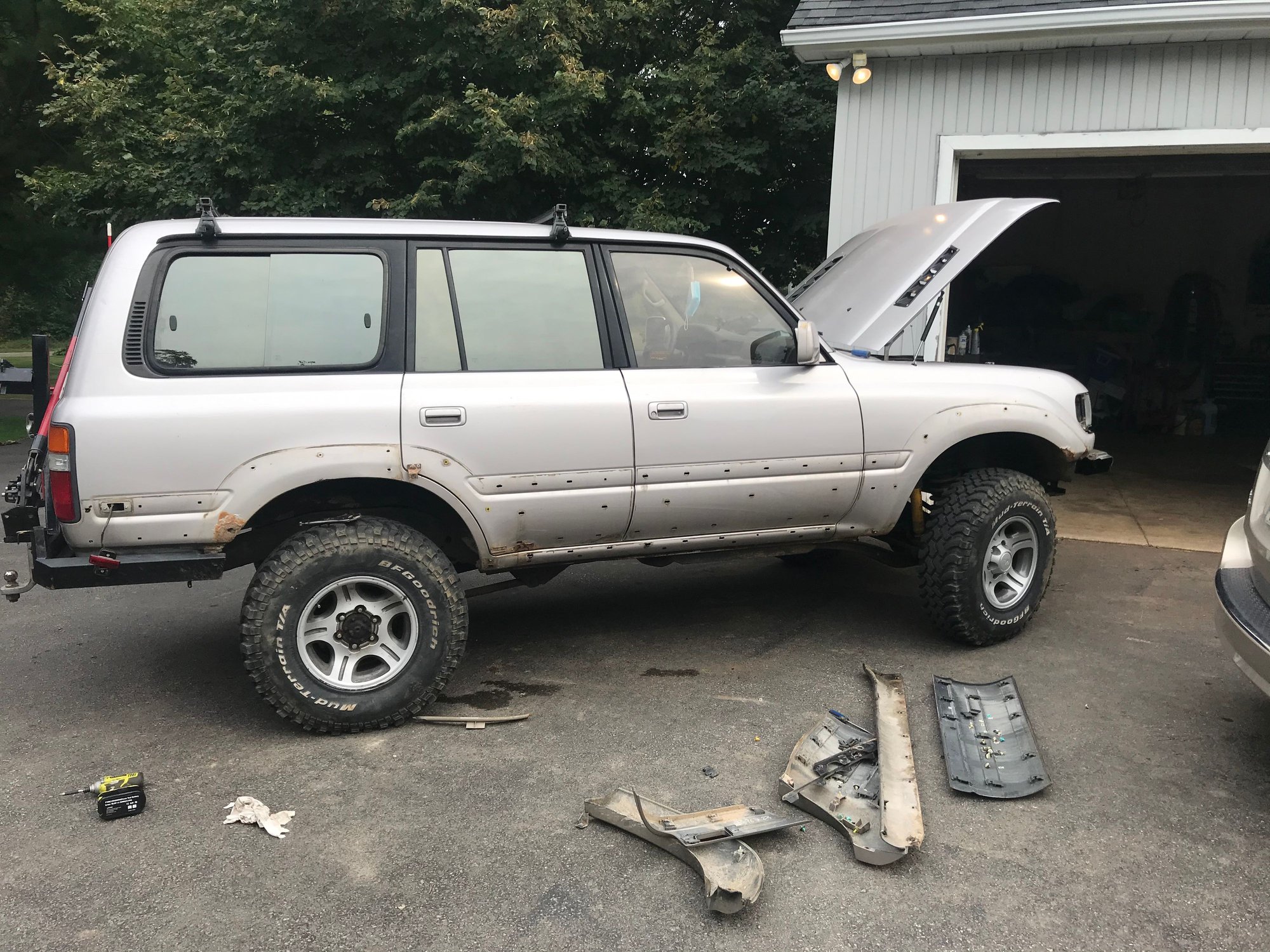 Now the fun stuff First things first, I started tearing off the stupid rear bumper Then I got the OME lift all ready to go and installed, I got 2850J for the front and heavy springs in the rear And started a rear bumper