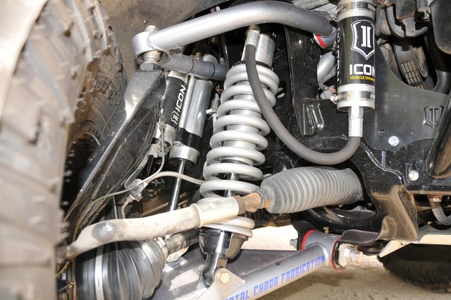 -Front Suspension: Total Chaos Long travel with heim uppers for more adjustability, Icon 2.5" remote res coilover, secondary Icon Bypass shocks, timbren bumpstops, Extended axles to retain 4wd