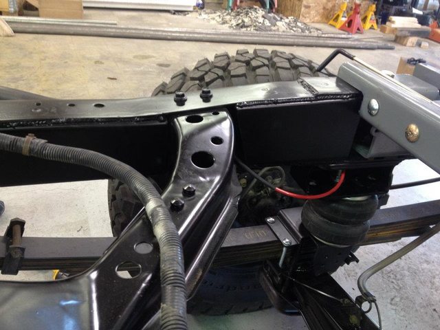 -Rear suspension: Total Chaos spring under kit, Icon bypass shocks & hydraulic bumpstops, Atlas Springs, Total Chaos shackles, custom heavy duty long travel airbag kit, Anti-rock Torsion swaybar, reinforced, boxed frame, additional crossemembers, custom bumper built onto OEM Tow hitch receiver to retain towing capability
