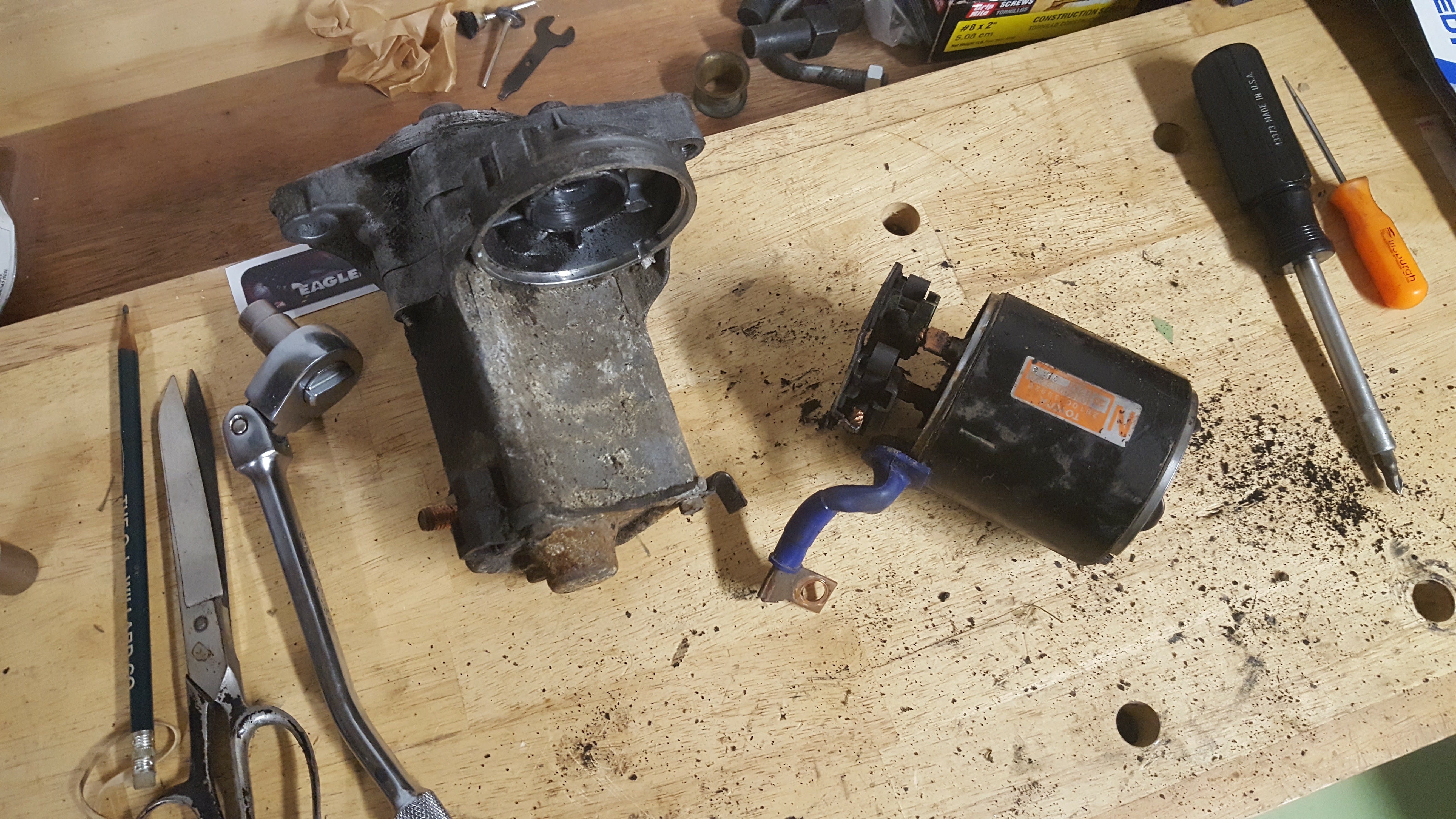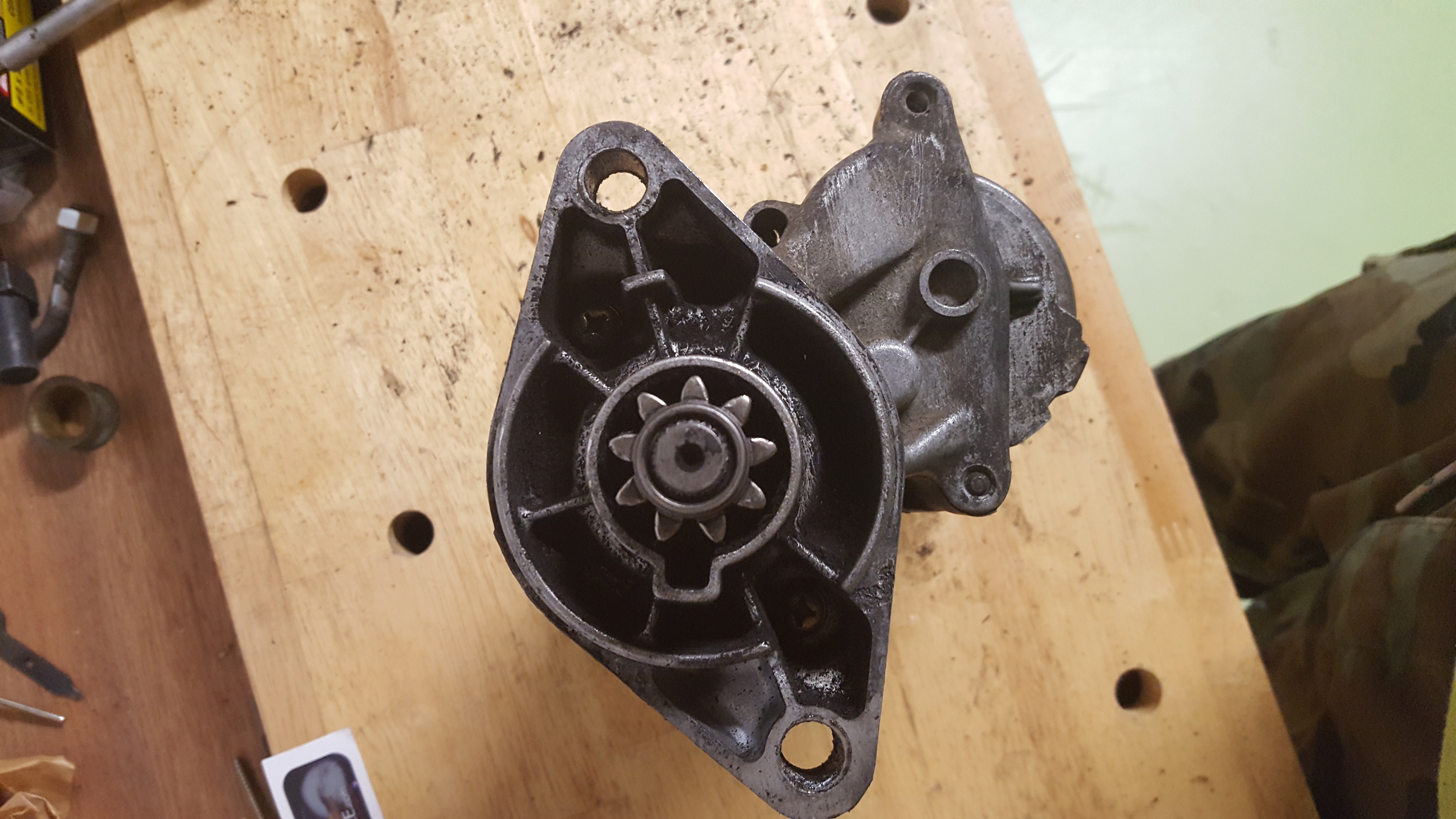 So, this morning, with no knowledge of how starters work or anything, I took it off the transmission and tried starting it. Same exact noises, no difference. So, I took it off and brought it inside and started taking it apart. The manual simply says "test, if starter buy new one" so thats no help. There's got to be a way to just fix it, if it is actually broken, right?