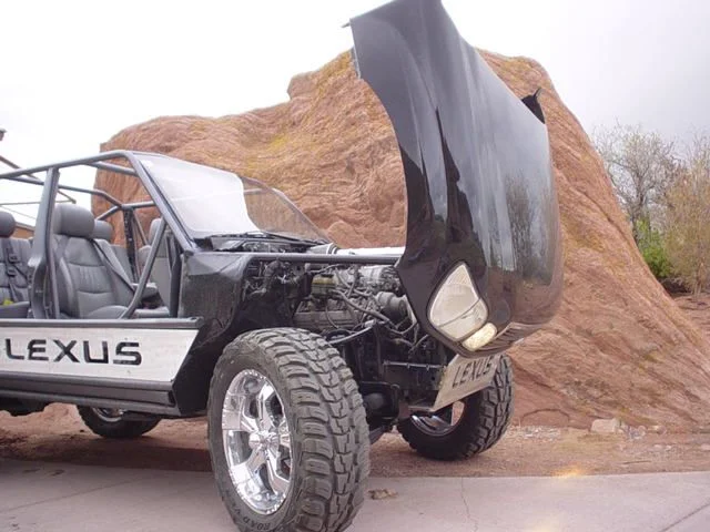 I used a cruiser chassis for its factory locker and no crappy height adjustable suspension were the reasons, then I put all the lexus parts except rear taillighs I even have mats and badges if it matters. I did not swap tailights because We will be wheeling it and have smashed many before. Actually I was going to put those stupid Altezza ones to match the chrome wheels just to piss you guys off. (kidding) . We did wheel it hard enough tot break it. I have 2 more both actual lexus to borrow parts from. Plan on hitting a few more events this year