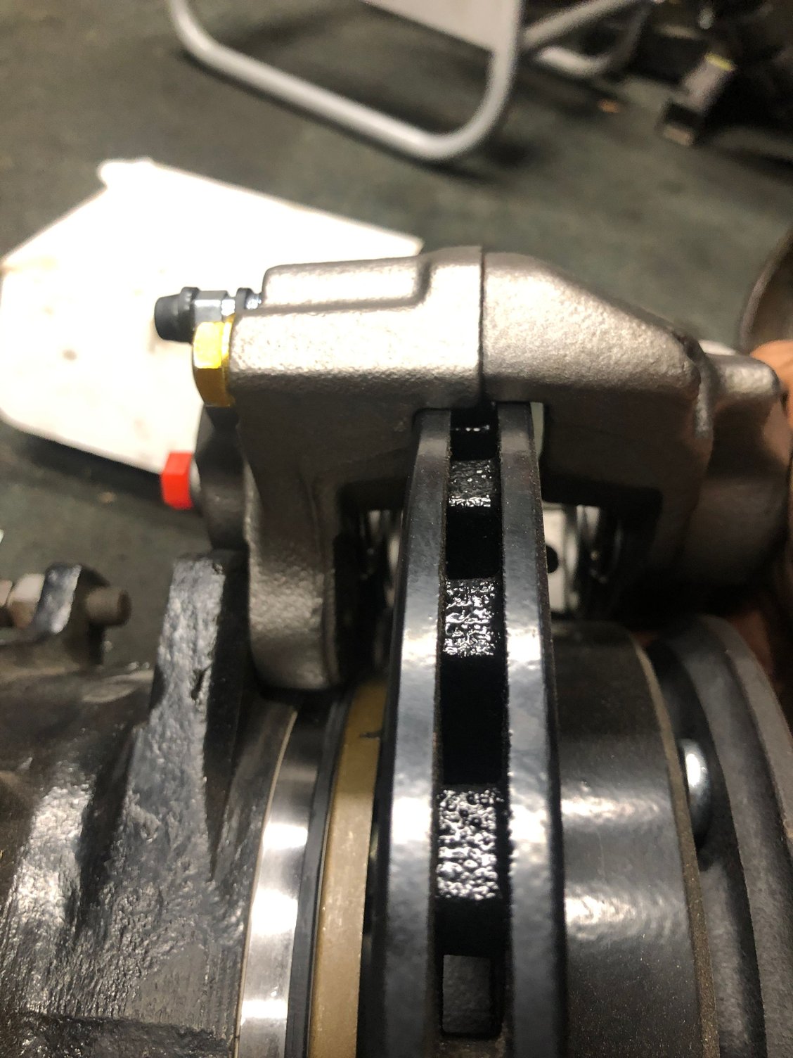 I don't remember what year but they were 80 series rotors I'm pretty sure. It clears but it's super tight like maybe .005 clearance. I think I'm just gonna machine like .060 of the caliper ears so it centers the caliper better