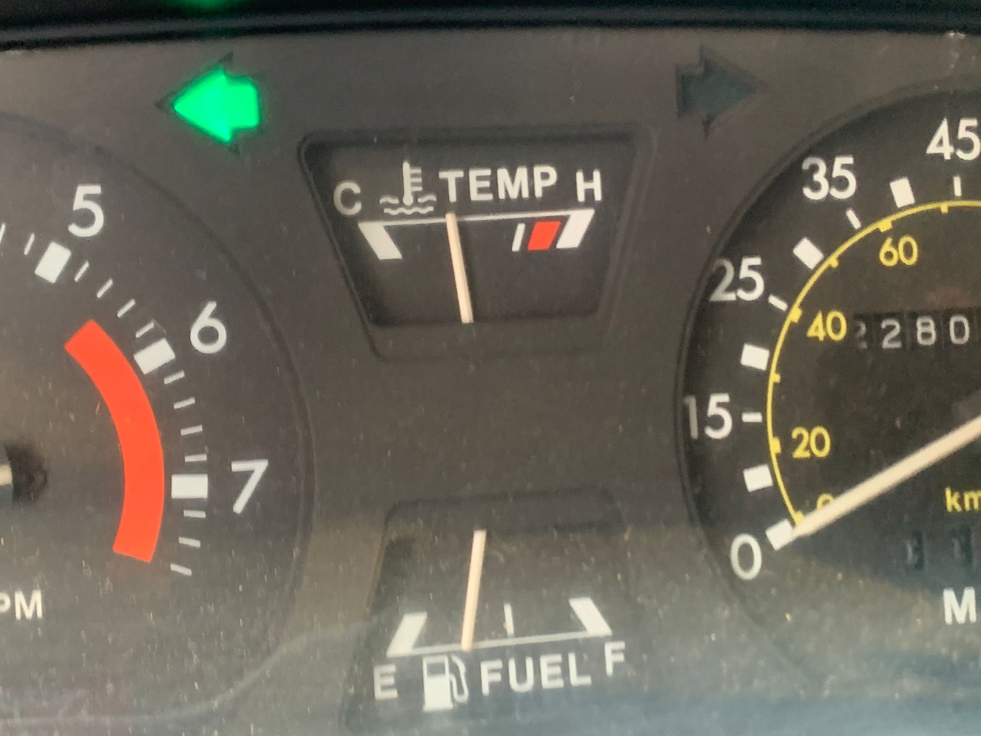 I got this 1990 toyota pickup 3.0l v6 5 speed manual. After repairing some stuff here and there i got some temp plates. The truck overheated so i checked the thermistat as reccomended online. Thermistat was fine in the pot of boiling water. Rad cap for overflow spring was fine not to much resistantce. Rad fan seemed fine so water pump and clutchpack is fine. Flushed the rad and ran cleaner and water through the system yet still overheating the only thing i can think of is the block is clogged. Help is truely appriciated. Also just a final note heat is minimal if that matters in the cab. Oh and also it only overheats above 40 kilometers per hr