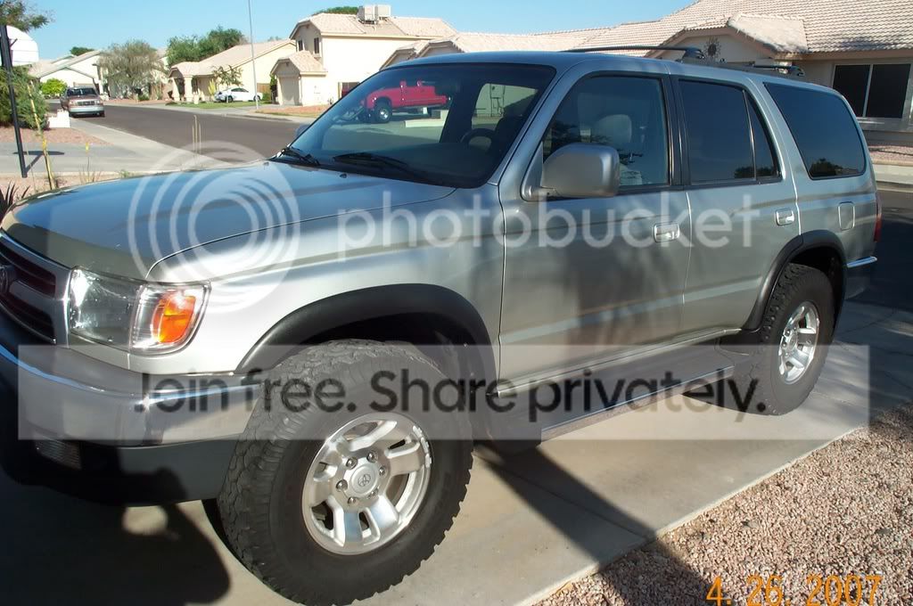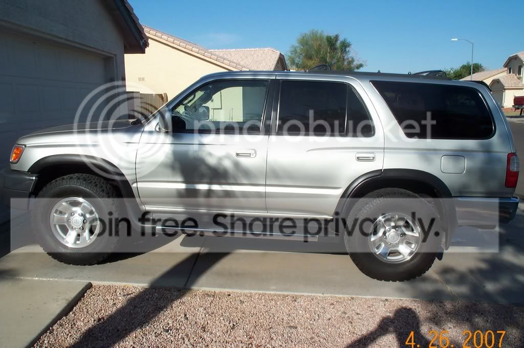 Hey Everyone, here are some links to my pics. I have a silver 2000 4Runner, V6, Auto, E-Locker, 265/75/16 BFG AT's. Pretty Stock for now.