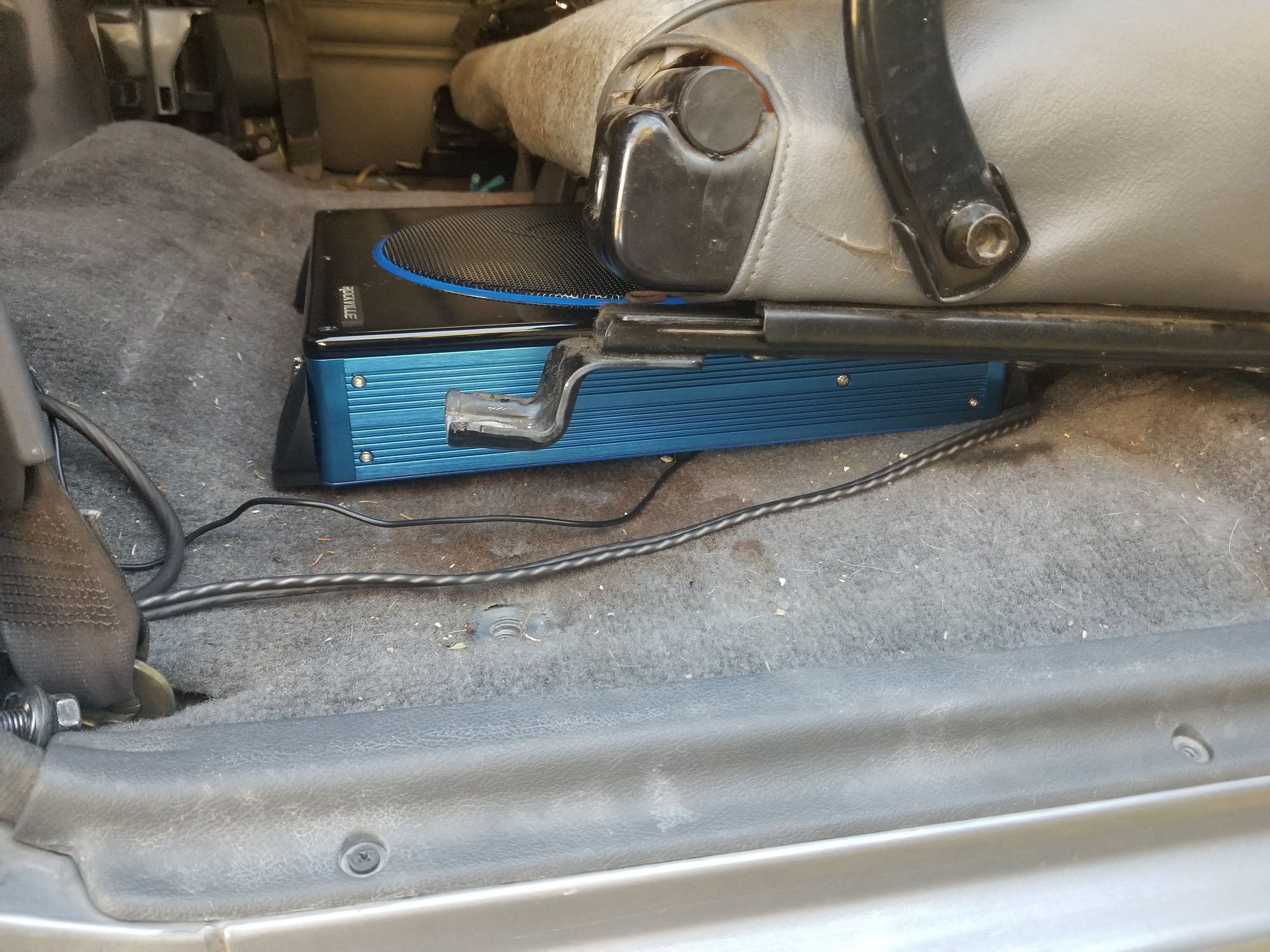 ) to drill some screws from inside out with an L bracket but I just can’t ghetto rig it.but my speaker is a wedge carpeted custom box I had my buddy make so it wedges with pressure from the seat BUT I lost some space......