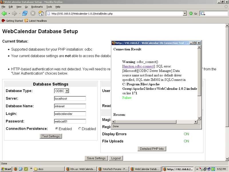 But here is my pathetic try... is the "Database Type" supposed to be "OBDC" and not mySQL? What are the other choices?