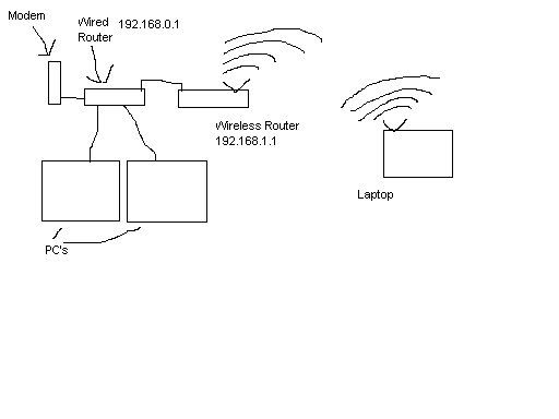 In the drawing you would set the wireless router to connect to a gateway of 192.168.0.1, this is assuming that you have a wired router not a wired switch.