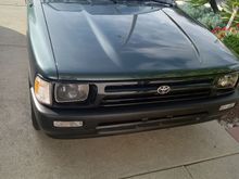 Showing LED Headlights, clear turn signals Plasti-Dip painted fender, wipers and window trim, tinted window top trim.