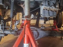 Trail gear says 11inches forward for the front leaf spring mount from stock location. They also want you to mark center of the old mount on the frame and cut everything out the way before proceeding. Since i do everything alone i knew trying to hold these mounts, measure, them, and square them then tack all without moving its position was gonna be a pain.