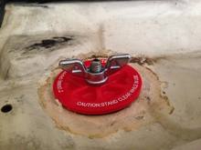Passenger side area with Cowl removed - the red plug is my home made cover