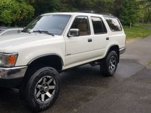 Checked the bracket on squareness and determined it is absolutely perfect front to back on either side. Checked the left to right squareness which is 1/8" out total which im fine with. Earlier when fitting i measured it was slightly out but decided i wasn't cutting all my tacs just to scoot it to the pass side 1/16". So then i looked at the body......The flare on the fenders is different, Passenger side is aftermarket, driver side Toyota.