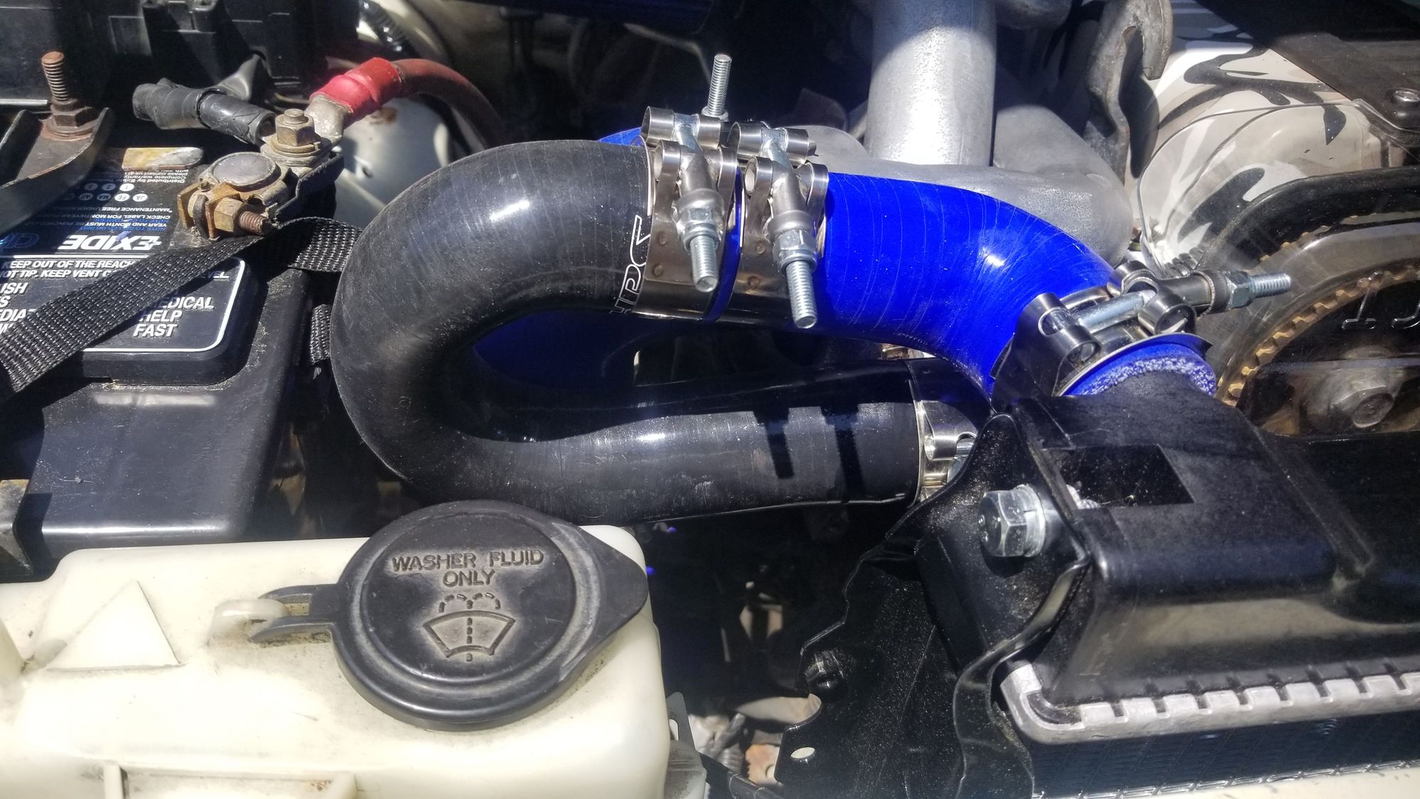 For the radiator it is the a brand new factory radiator. For the hook up i took the thermostat housing off the motor and cut the neck of it, rotated roughly 180° then welded back on. This puts it facing away from the motor and much eaisier to make the connection with no obstruction. Unfortunately i do not have a pic of the process. I orderd a 1 1/4" 180° silicone Ubend. I cut it to fit and clamped everything together. I really do not like using hose clamps on anything pressure or visible.