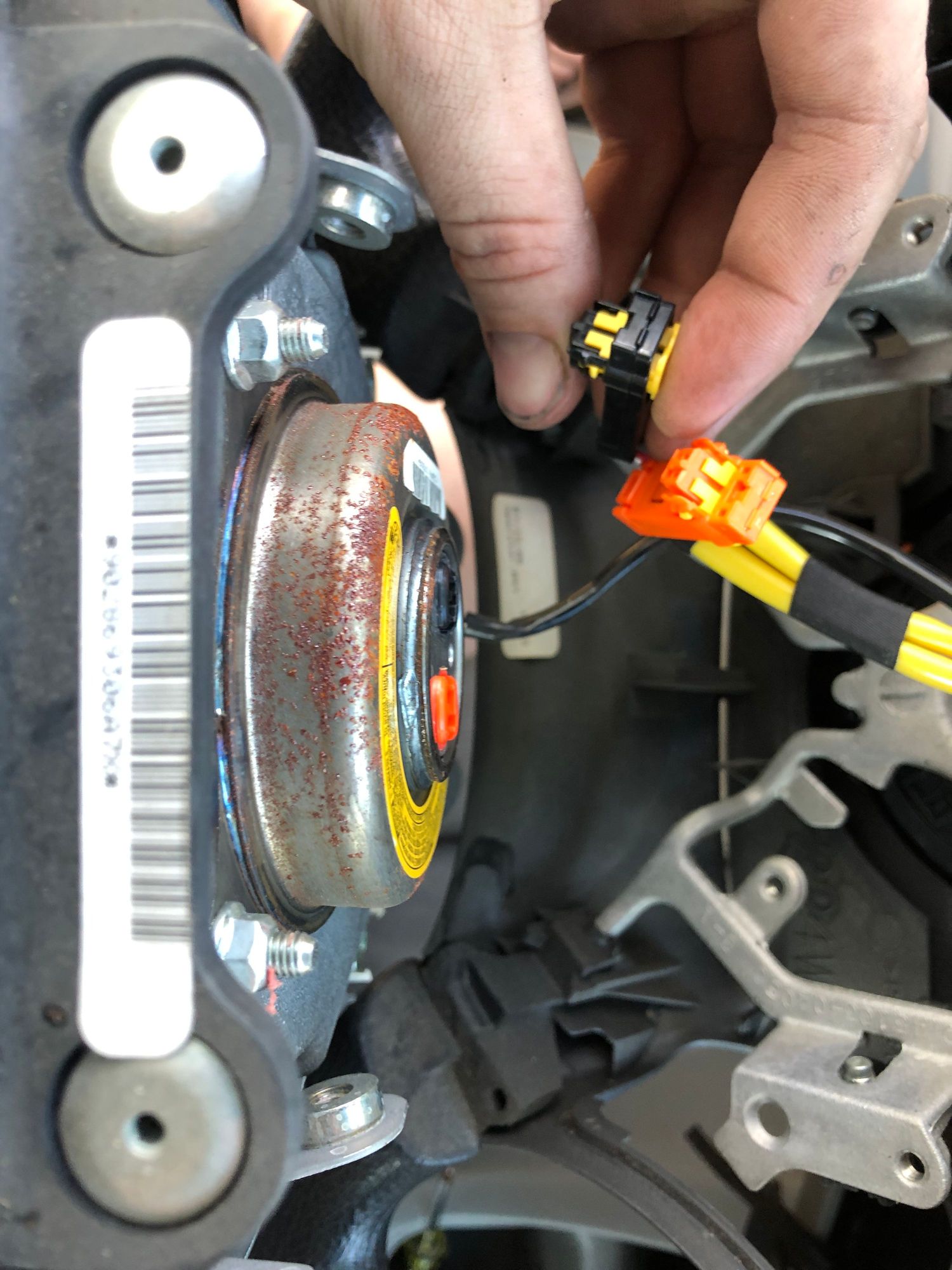 remove the two wires from the back of the airbag by pulling out of the yellow tabs, and pulling straight back on the connectors.