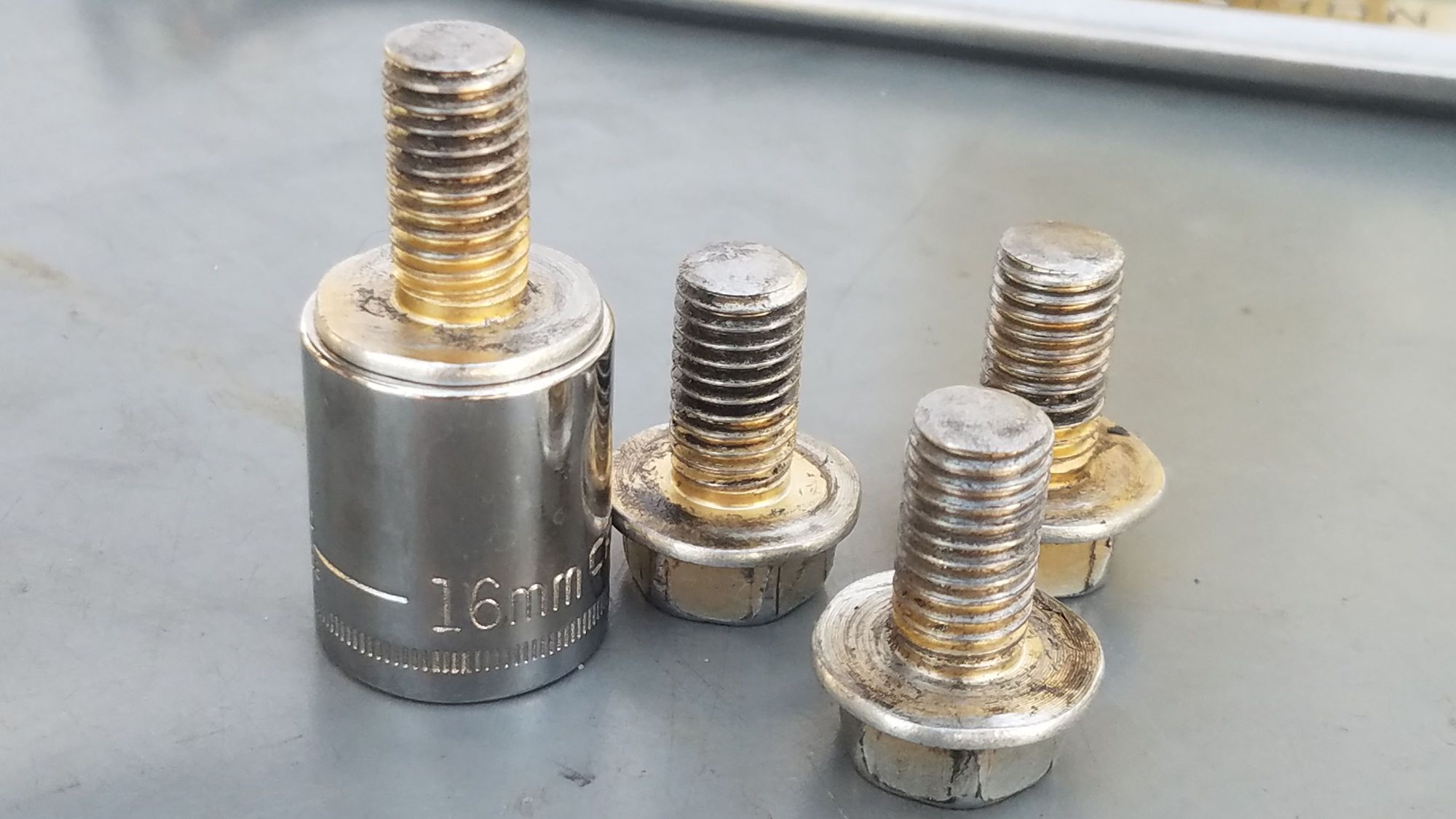 FILED/CLEANED TIP OF BOLTS. MAKE SURE EACH IS NO LONGER THAN 20MM