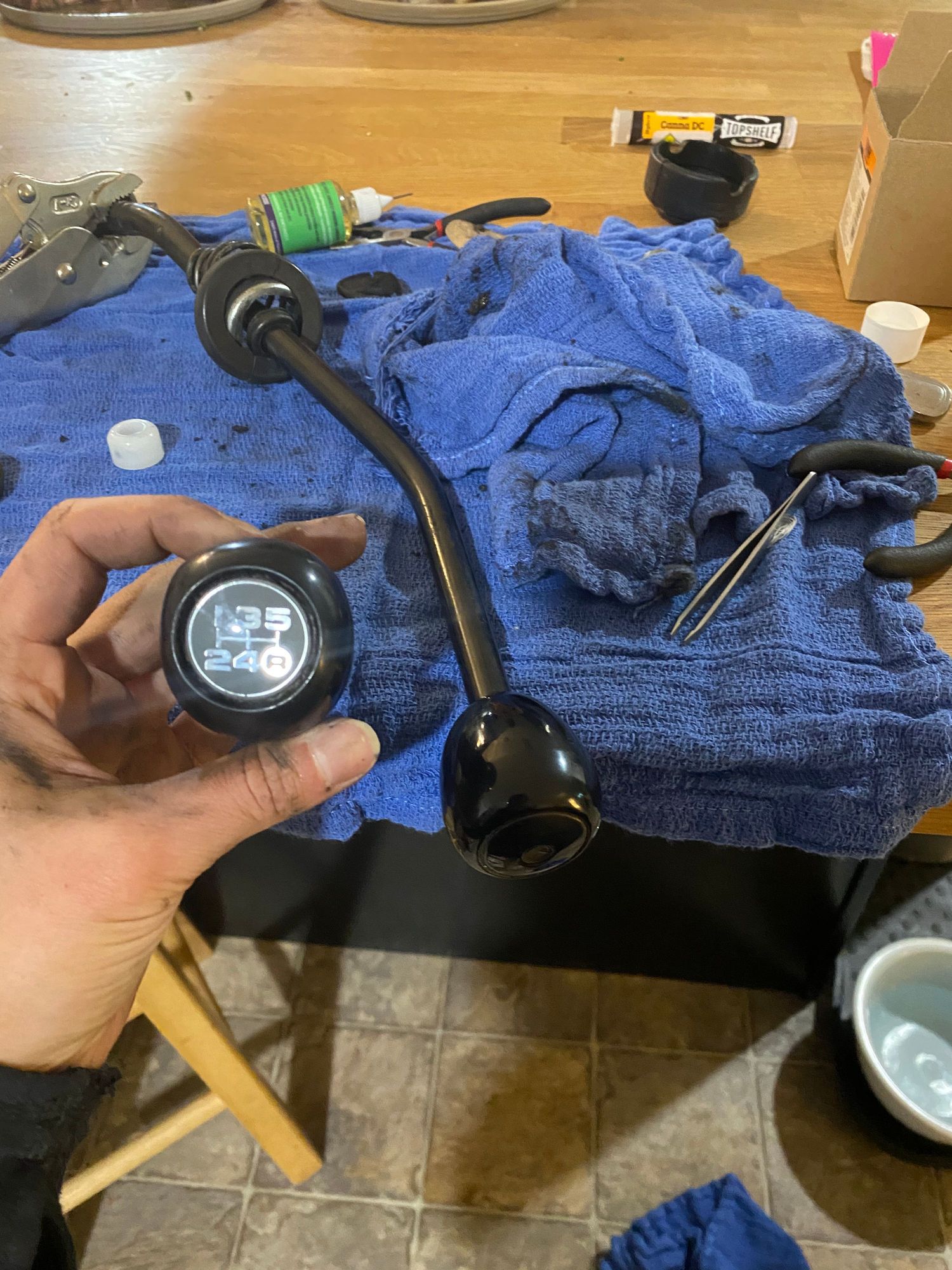 While replacing the shifter bushings on my 1982 4x4 5-speed, I was hoping to be able to put a new boot and knob on too, but I cannot get the knob off for the LIFE OF ME. I used vice grips on the rod and turned counter clockwise with my hand on the knob, used a heat gun, had my bf who is way stronger than me try as well and it just won't budge. I'm thinking maybe a former owner crazy glued it on or something? I've almost thought about sawing it off or taking it to my mechanic. Any tips? Thanks!
