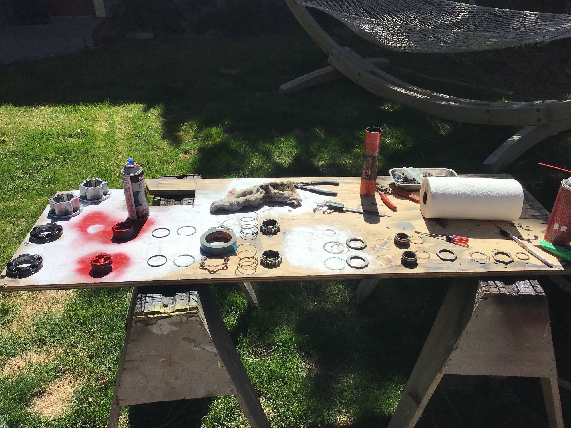 Both hubs completely disassembled and cleaned with CRC Brakleen and then painted.