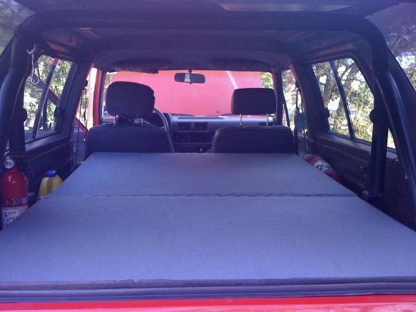 the two sections can be stacked on top of each other in the back so that I can fold the seats back up. (with the seats folded down I just remove the two seats on the front section so it just rests on top of the seats)