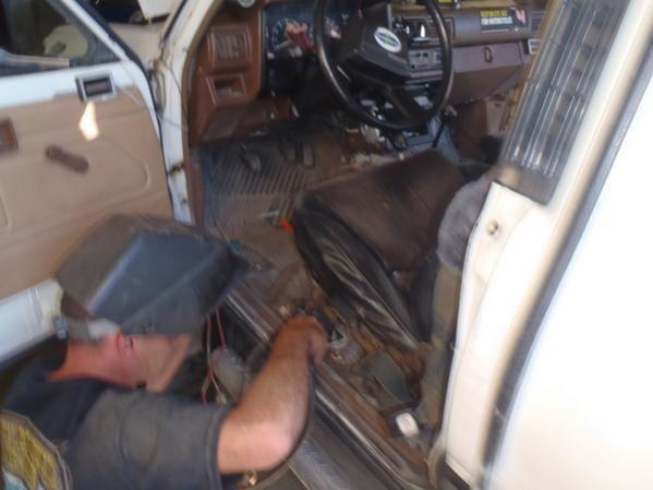 Seat mount rotted out. Welded on some channel, way nicer to drive when not in a rocking chair!