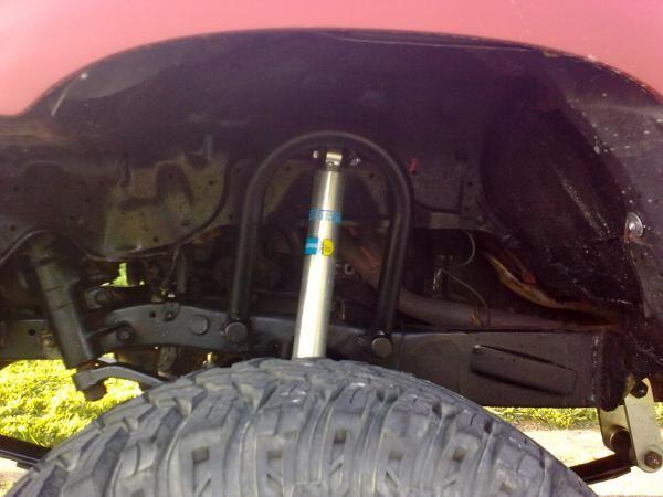 bilsteins with the weld on shock hoops.. running all pro 5 inch front springs and there front hanger .. only mistake i made was the rear leafs cause they are stock length lift springs and are still as hell for such a light truck ...soon to bbe swapped for trail gear rears