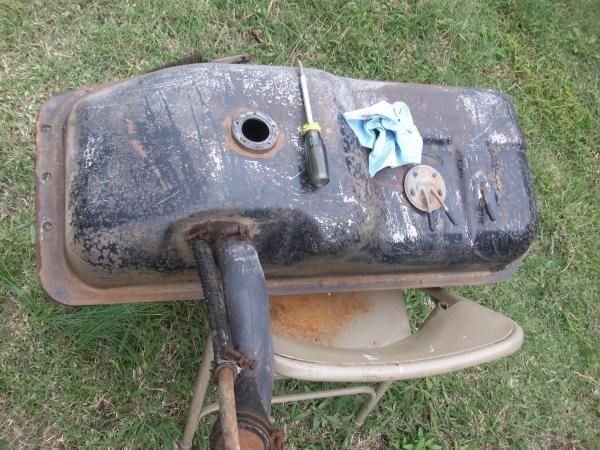 Tank with all the dirt knocked off along with some old paint...