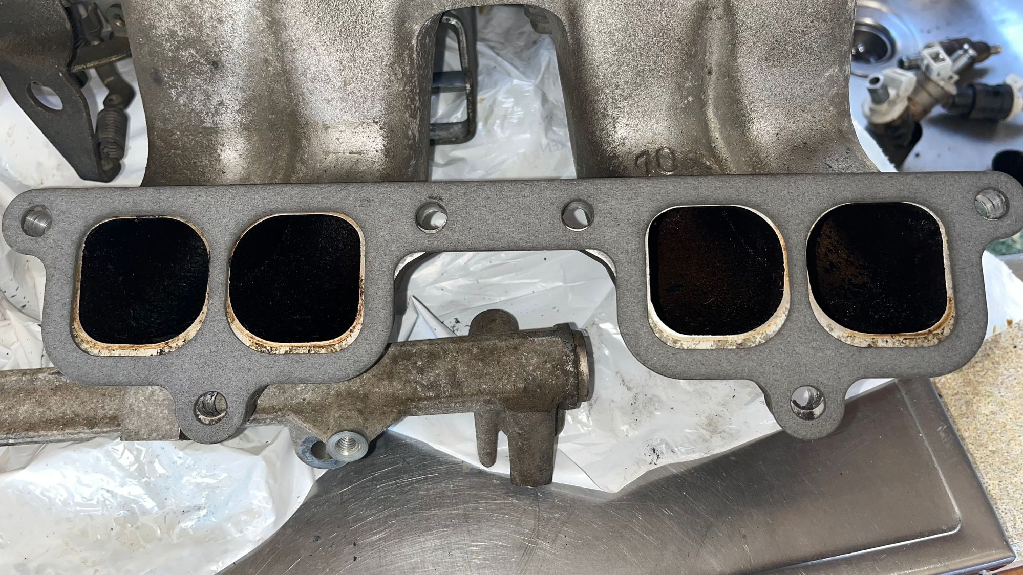 Plenum to intake manifold, top bolt holes aligned and bottom not