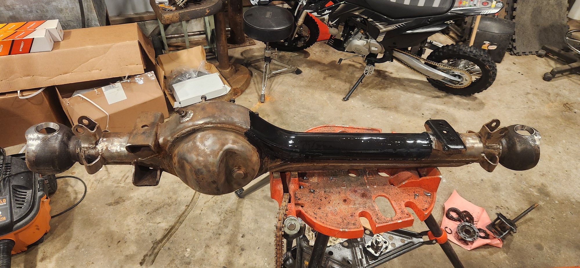 Top of axle and inside of truss painted before truss gets welded on.
