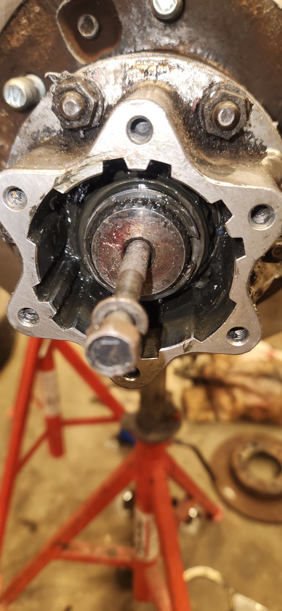 Using any toyota 12mm bolt you can thread it into the end ove axle. This give you something to grab and pull the axle through just enough to reinsert your split ring.