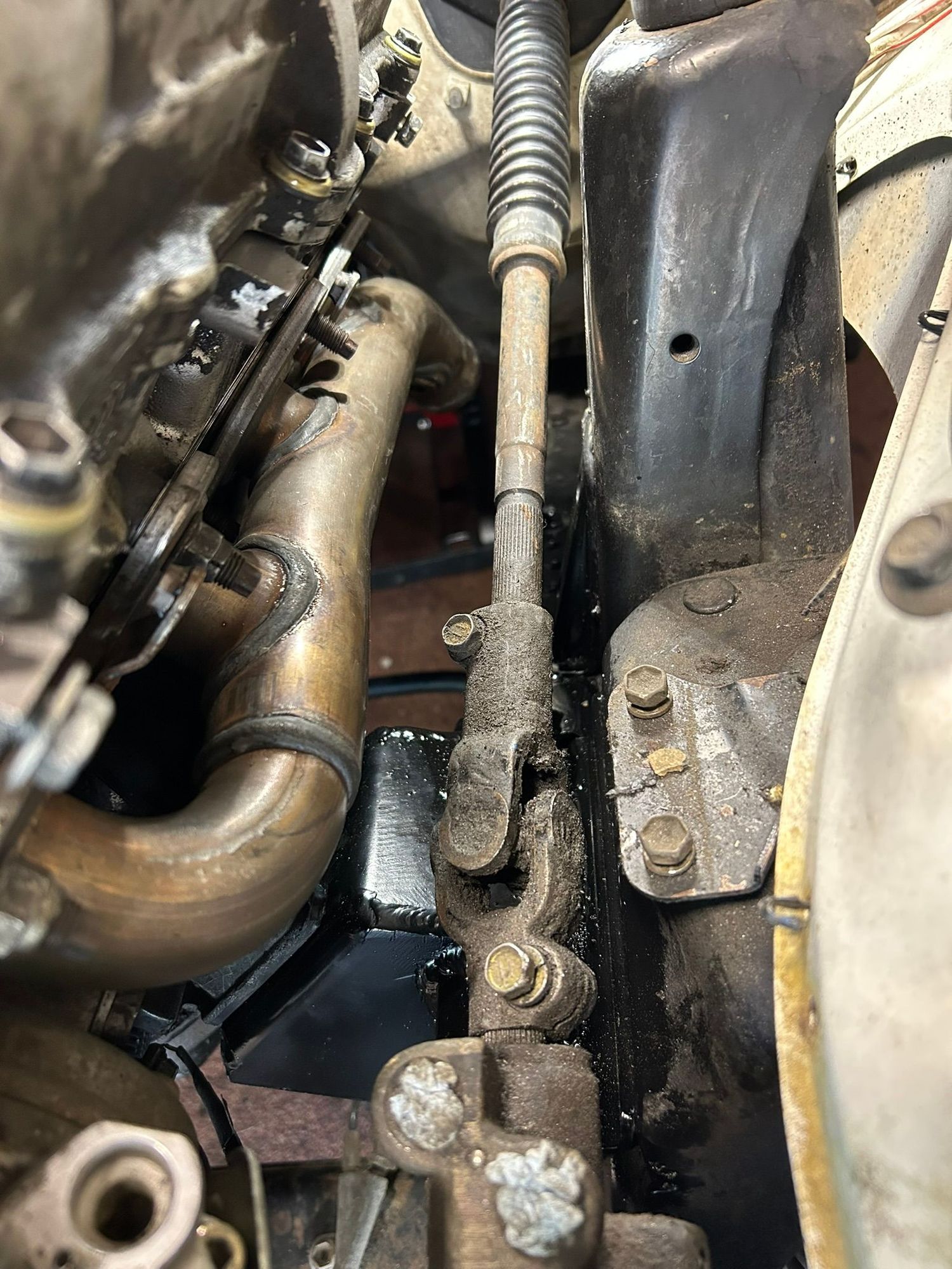 This shows the excellent clearance of the 2UZ manifolds. the 1UZ's were heavily pressing on the steering shaft without the engine even seated all the way.
