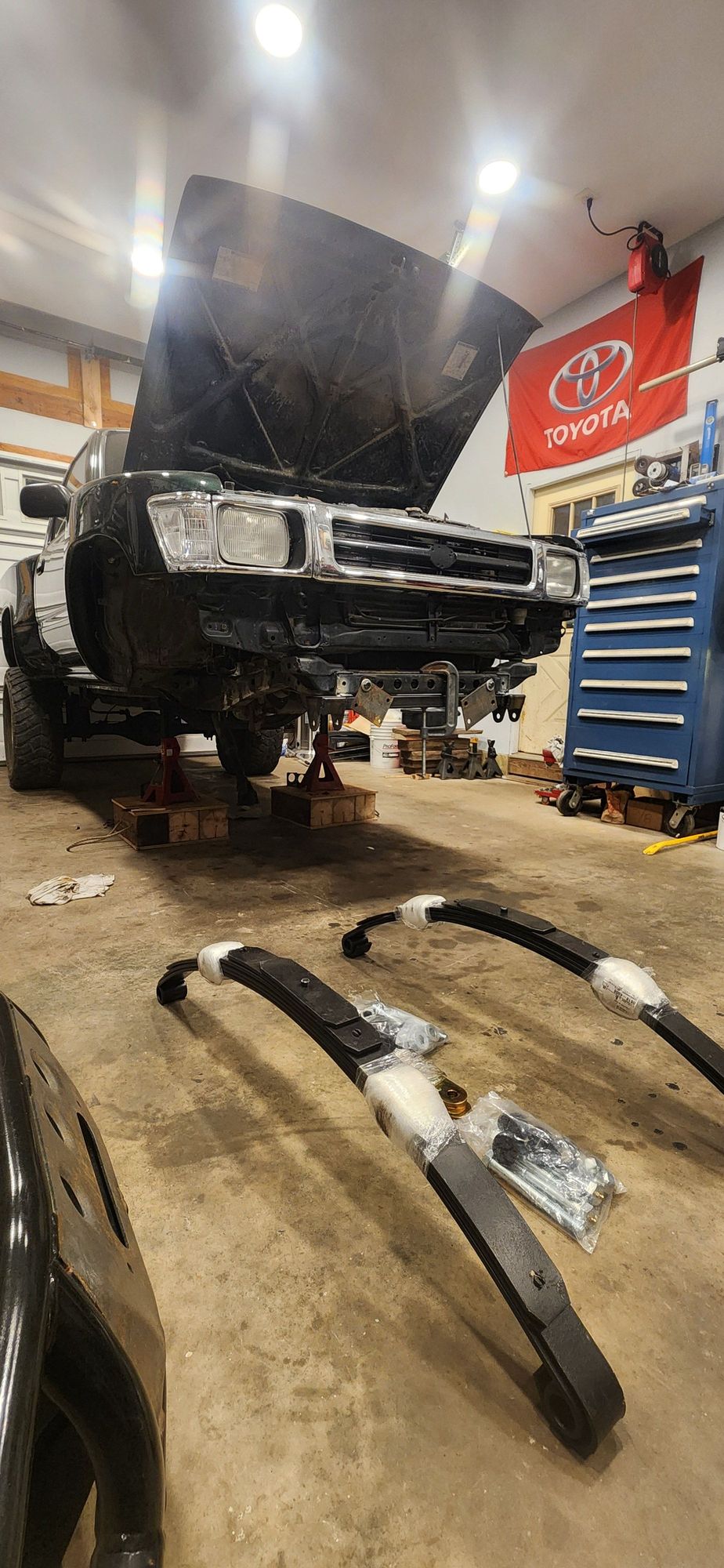 Time for leaf spring prep while the paint on frame tubes cures.