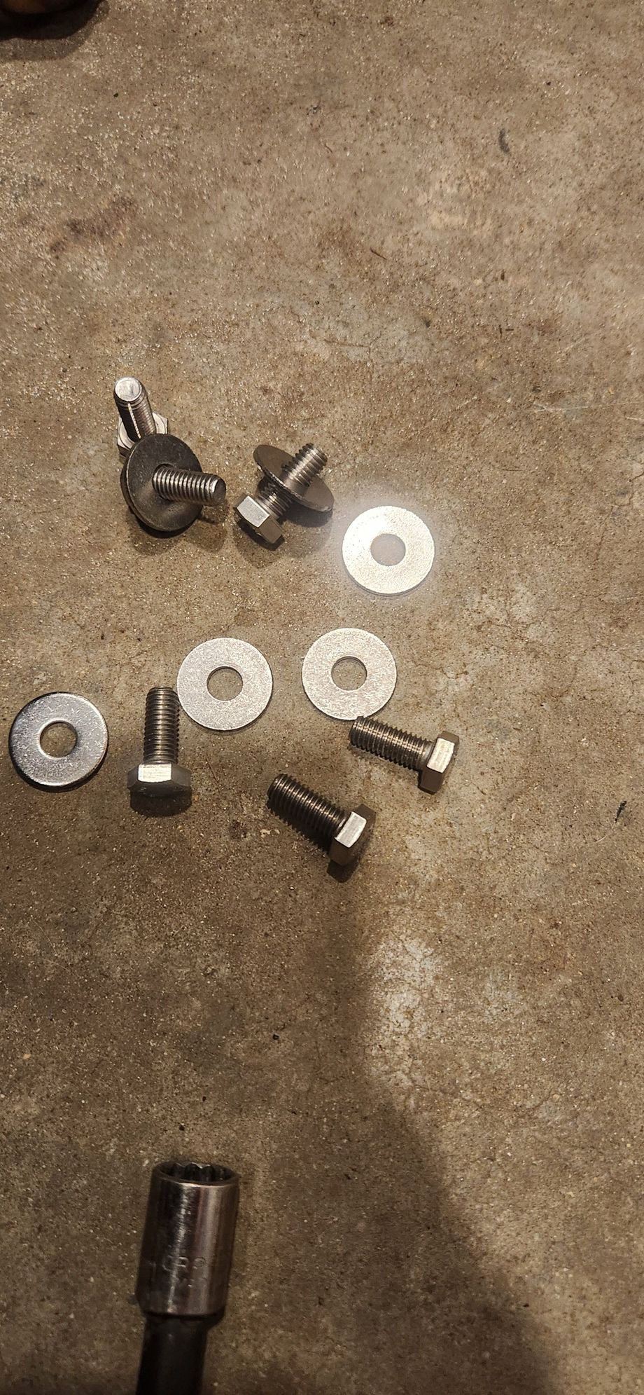 When i took the gas tank out it only had 3 of the 6 bolts holding it up. Instead of mox matching i bought new stainless bolts and washers for it. The factory thread for these is M8x1.25