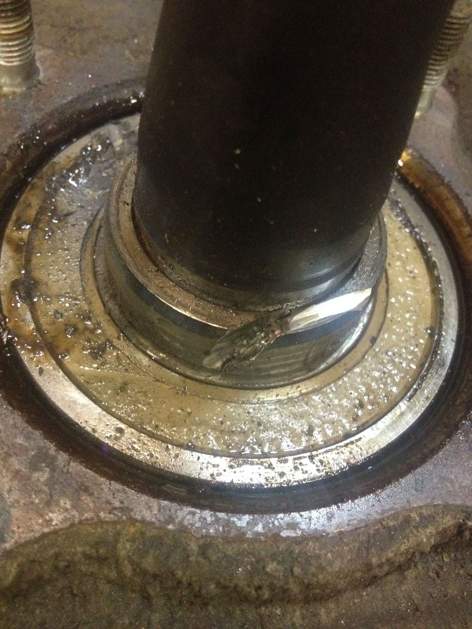 A little cut with the die grinder and a couple of hits on a chisel and the lock ring snaps