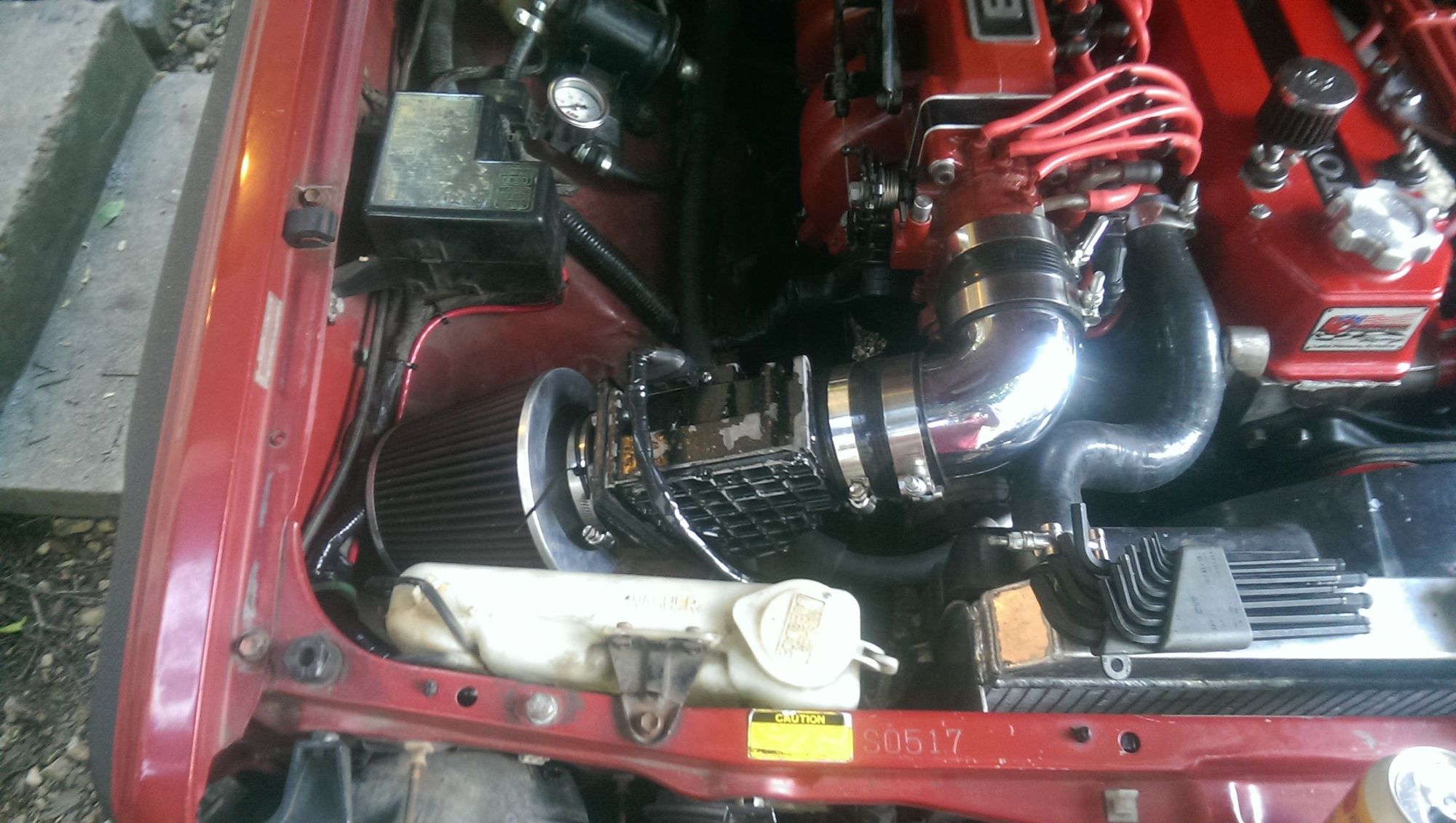 simple 90 degree 3" spectre elbow from Pep boys and extended MAF / AFM wiring to that location.