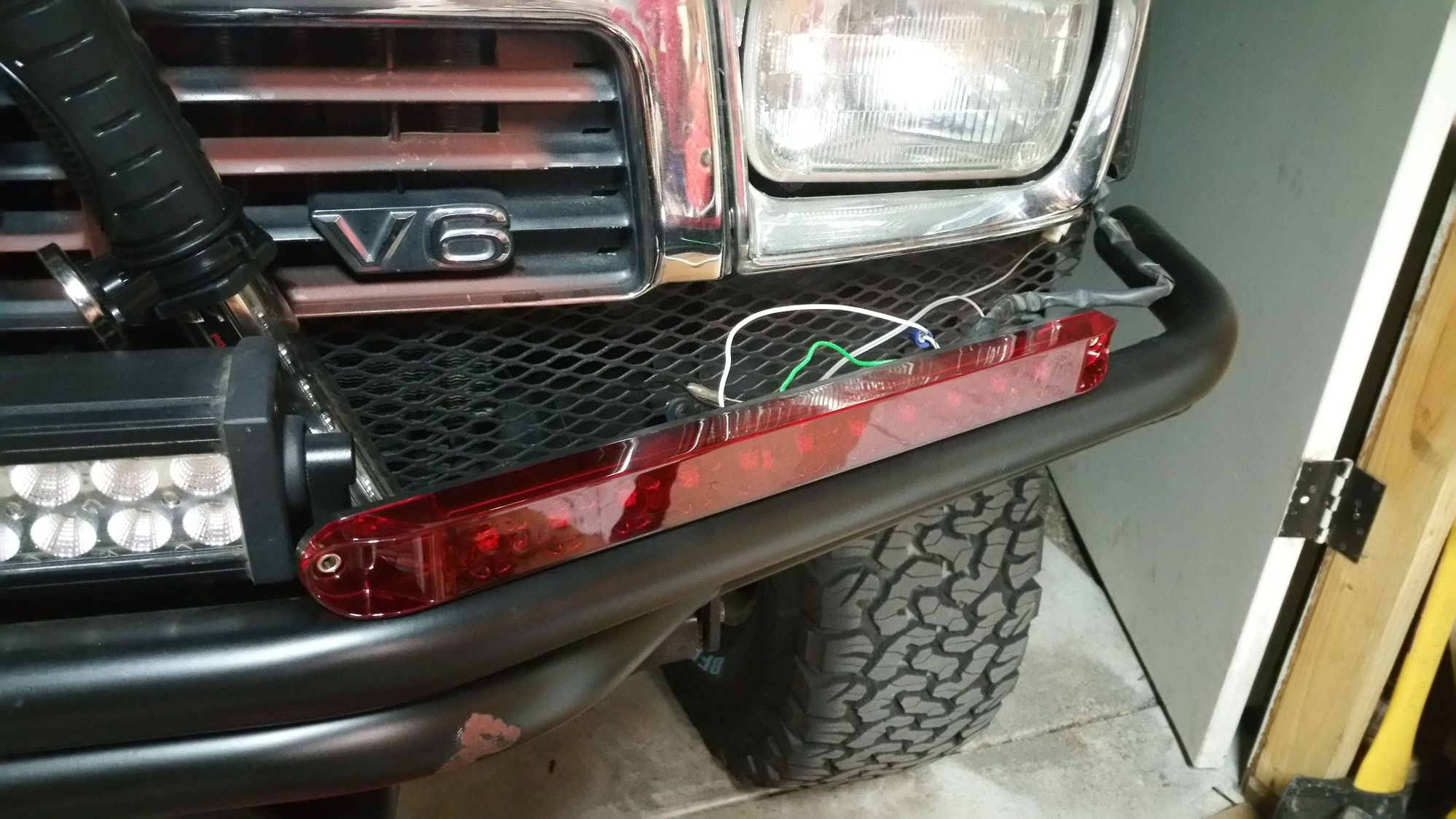 2nd attempt at turn signals. I got these 17 inch LED lights. They are nice and bright, AND have 2 circuits, one for lower powered running lights and one for turn signals or brake. Obviously in my application I don't have the need for a braking circuit. I think they will look good and not ghetto like some 'led strips' that I see around. This mounts very well just beneath the headlight and extends to about where the light bar starts. Once it's installed, I hope I like the look!