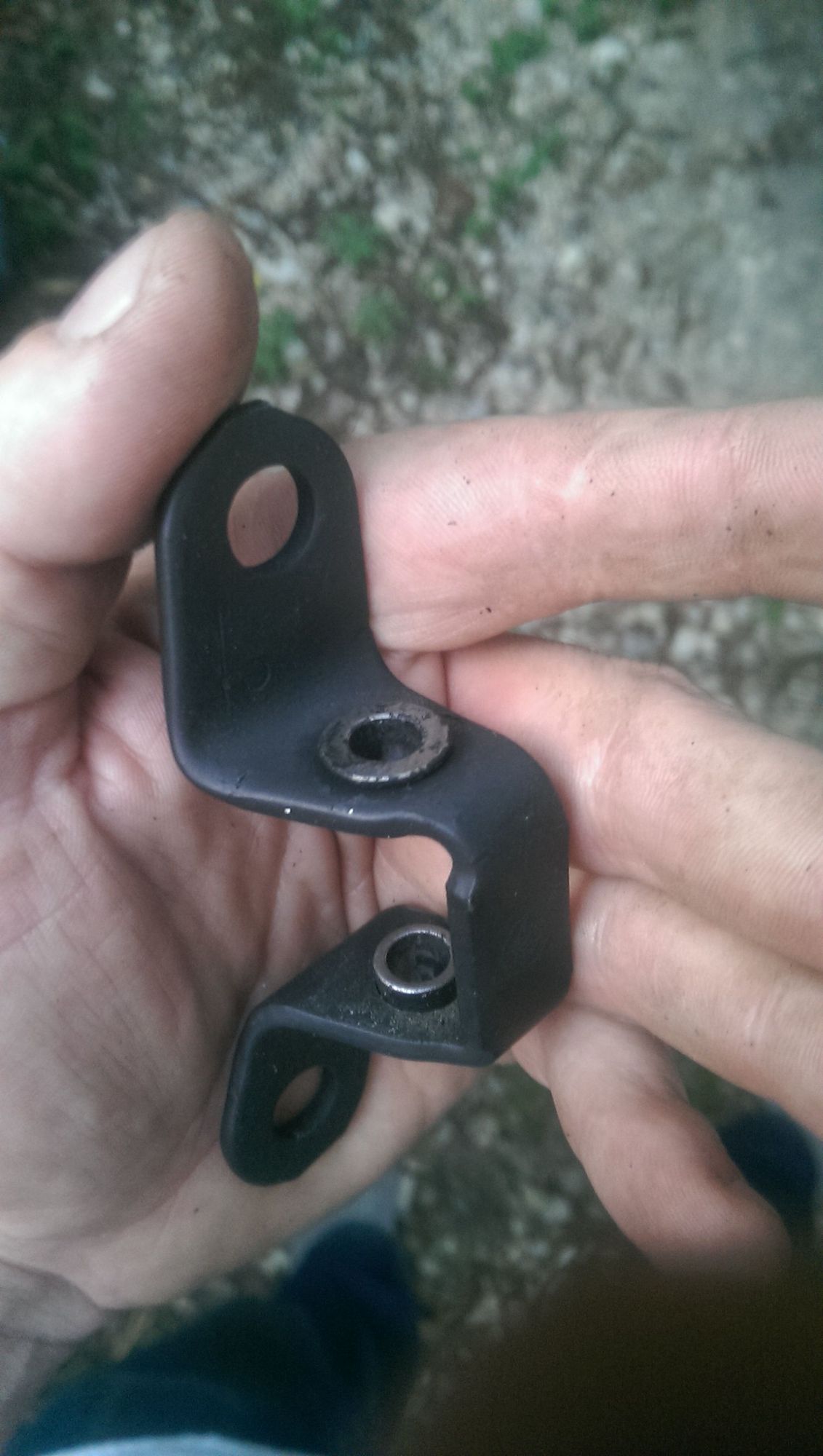 holes drilled out to 7/16" to accommodate new stronger bushing/bearing McMaster part 2938T5