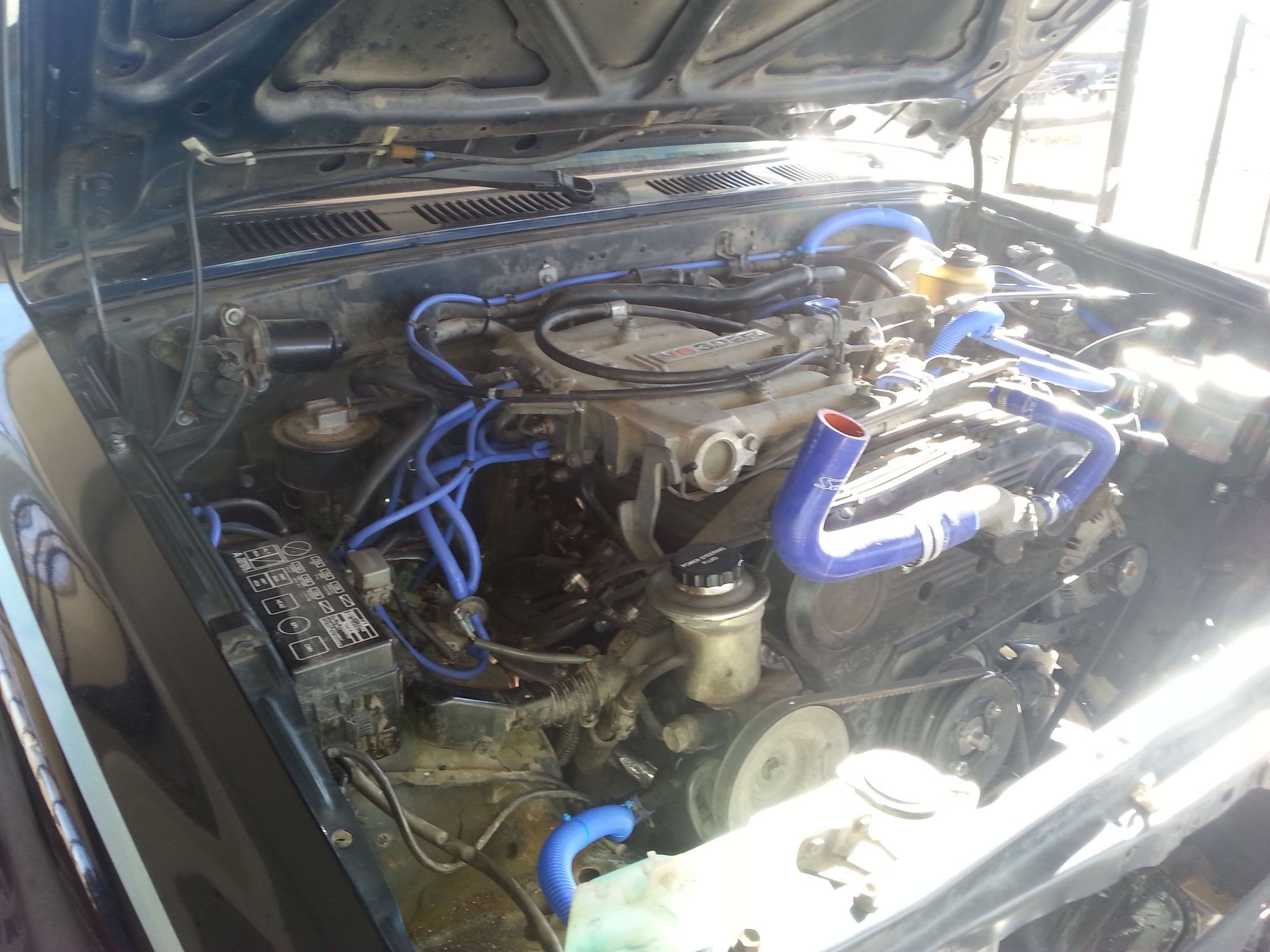 Starting to switch out parts, vacuum lines all done, egr delete completed, most wiring is covered in blue sleeving, and i started on the radiator hoses.