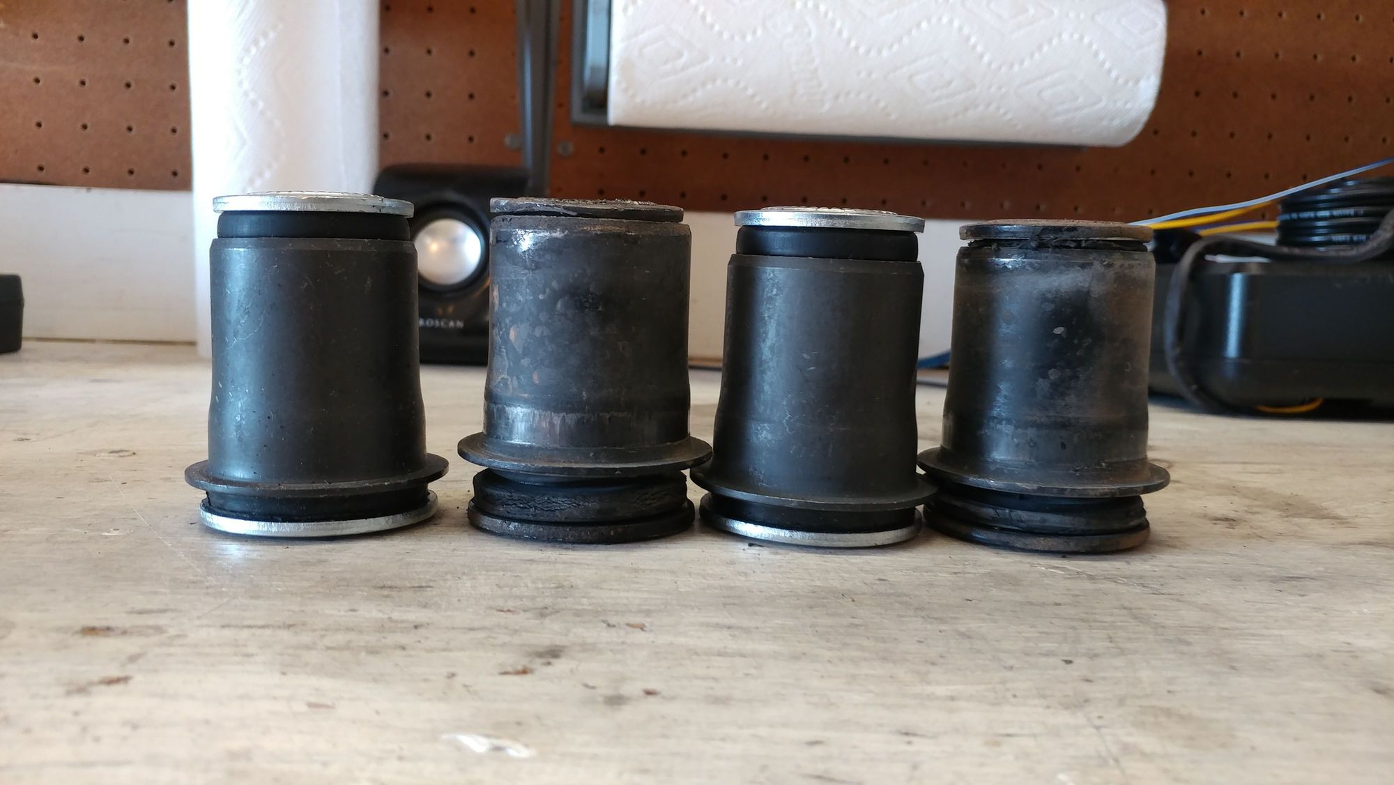 Old bushings next to the new ones.